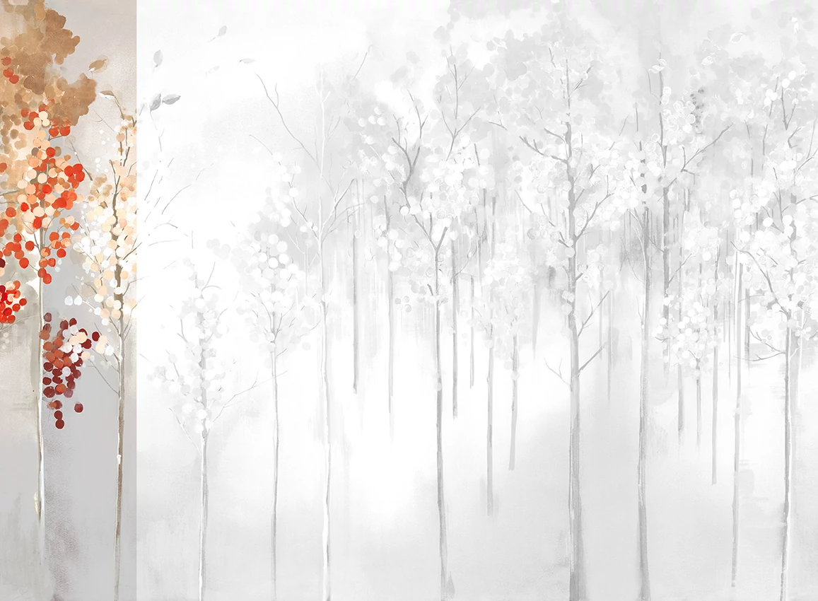A JV 202 Murals Decor kollekció széles választékát kínálja dekoratív falfestményeknek, amelyekkel egyedi hangulatot és személyre szabott stílust varázsolhat otthonába. Az új témákban gazdag kínálat egy lebontási rendszert alkalmaz, amely a kollekció alapköve, megkönnyítve a választást és a felhelyezést. Elvarázsolt erdő, ködbe burkolózva, nyírfákat ábrázolva őszi lombkoronával. Juharfa minták különböző színvariációkban, amelyek melegséget sugároznak a helyiségekbe, és az ezüst alapon világító változatban megvilágítják a falat.