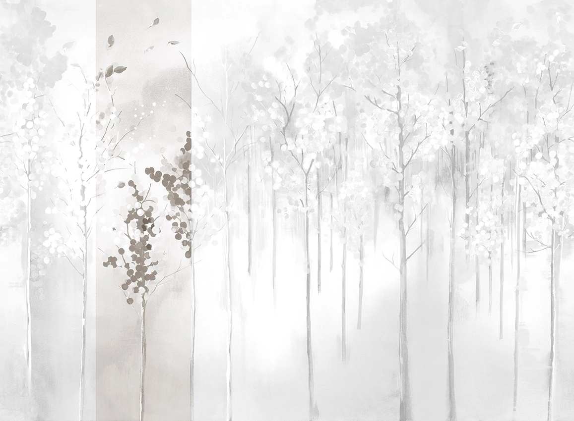 A JV 202 Murals Decor kollekció széles választékát kínálja dekoratív falfestményeknek, amelyekkel egyedi hangulatot és személyre szabott stílust varázsolhat otthonába. Az új témákban gazdag kínálat egy lebontási rendszert alkalmaz, amely a kollekció alapköve, megkönnyítve a választást és a felhelyezést. Elvarázsolt erdő, ködbe burkolózva, nyírfákat ábrázolva őszi lombkoronával. Juharfa minták különböző színvariációkban, amelyek melegséget sugároznak a helyiségekbe, és az ezüst alapon világító változatban megvilágítják a falat.
