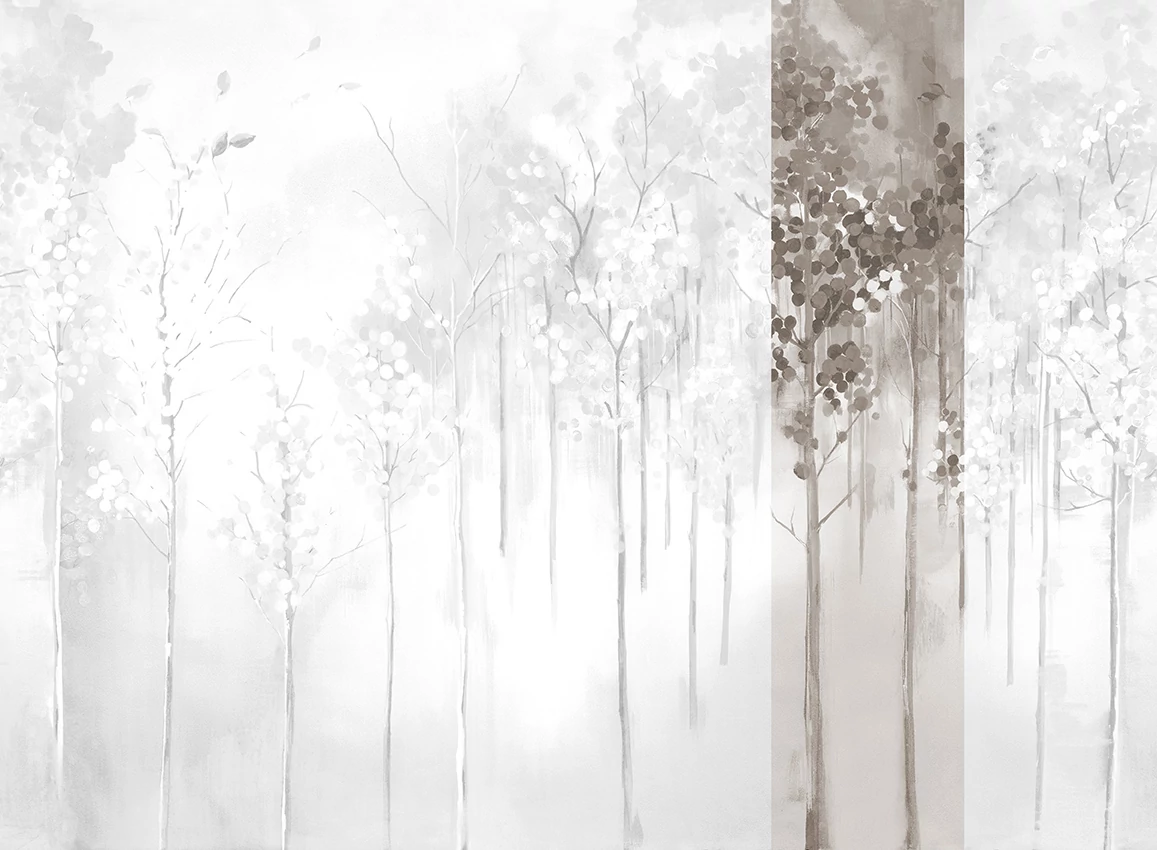 A JV 202 Murals Decor kollekció széles választékát kínálja dekoratív falfestményeknek, amelyekkel egyedi hangulatot és személyre szabott stílust varázsolhat otthonába. Az új témákban gazdag kínálat egy lebontási rendszert alkalmaz, amely a kollekció alapköve, megkönnyítve a választást és a felhelyezést. Elvarázsolt erdő, ködbe burkolózva, nyírfákat ábrázolva őszi lombkoronával. Juharfa minták különböző színvariációkban, amelyek melegséget sugároznak a helyiségekbe, és az ezüst alapon világító változatban megvilágítják a falat.