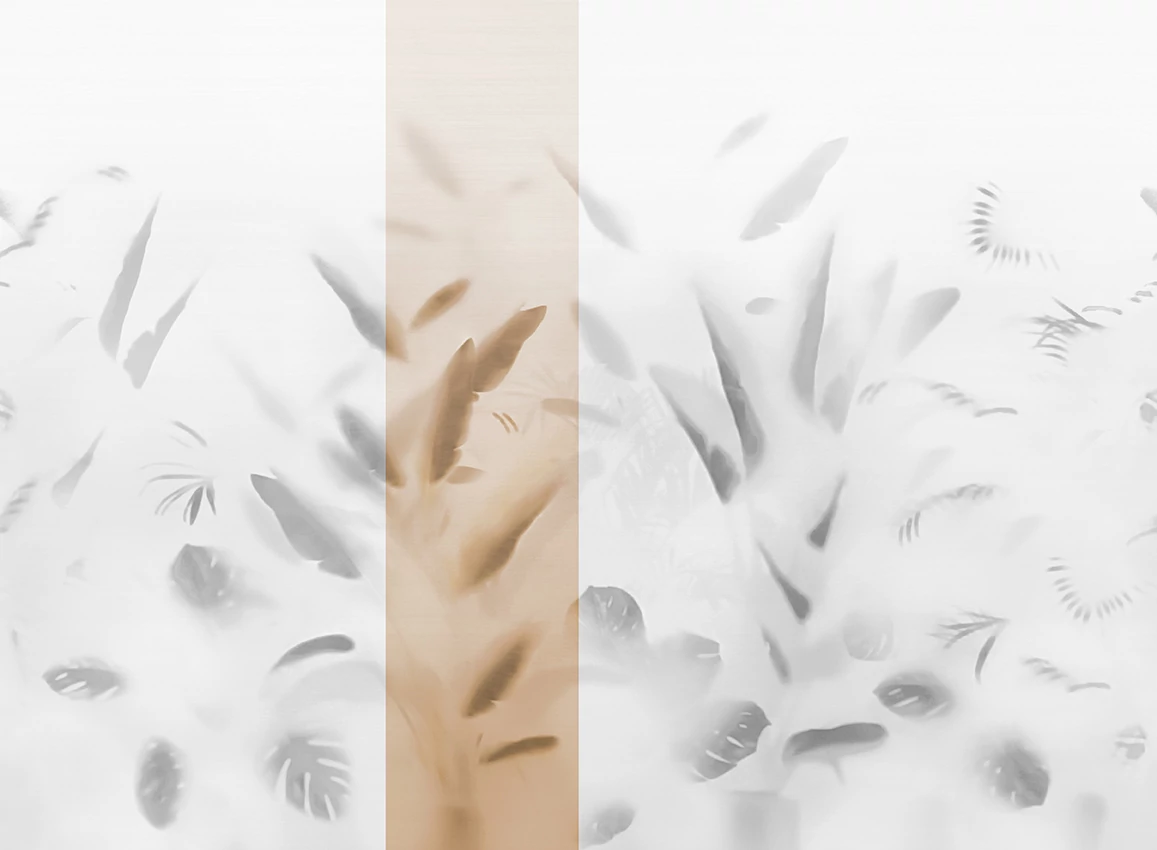 A JV 202 Murals Decor kollekció széles választékát kínálja dekoratív falfestményeknek, amelyekkel egyedi hangulatot és személyre szabott stílust varázsolhat otthonába vagy bármilyen térbe. Az új témákkal teli kínálat egy lebontási rendszert alkalmaz, amely a kollekció sarokköve, megkönnyítve a választást és az alkalmazást. Egy matt üveg, amelyen keresztül a trópusi levelek sziluettjei sejlenek fel. A Nadi bármilyen környezethez alkalmazkodik, legyen az magánlakás vagy szerződéses tér, tökéletes hátteret teremtve a berendezésnek.