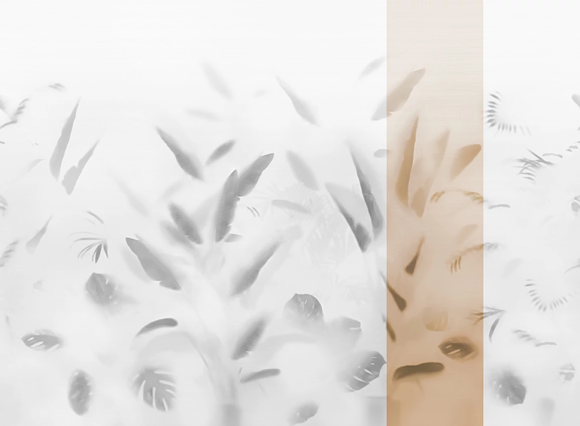 A JV 202 Murals Decor kollekció széles választékát kínálja dekoratív falfestményeknek, amelyekkel egyedi hangulatot és személyre szabott stílust varázsolhat otthonába vagy bármilyen térbe. Az új témákkal teli kínálat egy lebontási rendszert alkalmaz, amely a kollekció sarokköve, megkönnyítve a választást és az alkalmazást. Egy matt üveg, amelyen keresztül a trópusi levelek sziluettjei sejlenek fel. A Nadi bármilyen környezethez alkalmazkodik, legyen az magánlakás vagy szerződéses tér, tökéletes hátteret teremtve a berendezésnek.