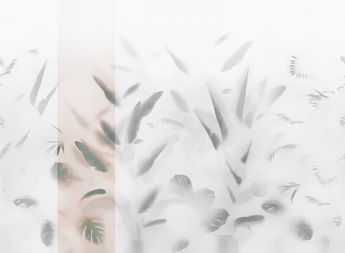A JV 202 Murals Decor kollekció széles választékát kínálja dekoratív falfestményeknek, amelyekkel egyedi hangulatot és személyre szabott stílust varázsolhat otthonába vagy bármilyen térbe. Az új témákkal teli kínálat egy lebontási rendszert alkalmaz, amely a kollekció sarokköve, megkönnyítve a választást és az alkalmazást. Egy matt üveg, amelyen keresztül a trópusi levelek sziluettjei sejlenek fel. A Nadi bármilyen környezethez alkalmazkodik, legyen az magánlakás vagy szerződéses tér, tökéletes hátteret teremtve a berendezésnek.