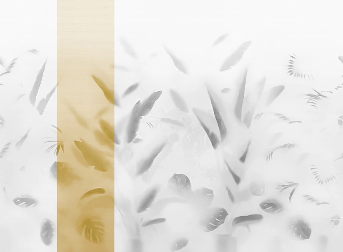A JV 202 Murals Decor kollekció széles választékát kínálja dekoratív falfestményeknek, amelyekkel egyedi hangulatot és személyre szabott stílust varázsolhat otthonába vagy bármilyen térbe. Az új témákkal teli kínálat egy lebontási rendszert alkalmaz, amely a kollekció sarokköve, megkönnyítve a választást és az alkalmazást. Egy matt üveg, amelyen keresztül a trópusi levelek sziluettjei sejlenek fel. A Nadi bármilyen környezethez alkalmazkodik, legyen az magánlakás vagy szerződéses tér, tökéletes hátteret teremtve a berendezésnek.