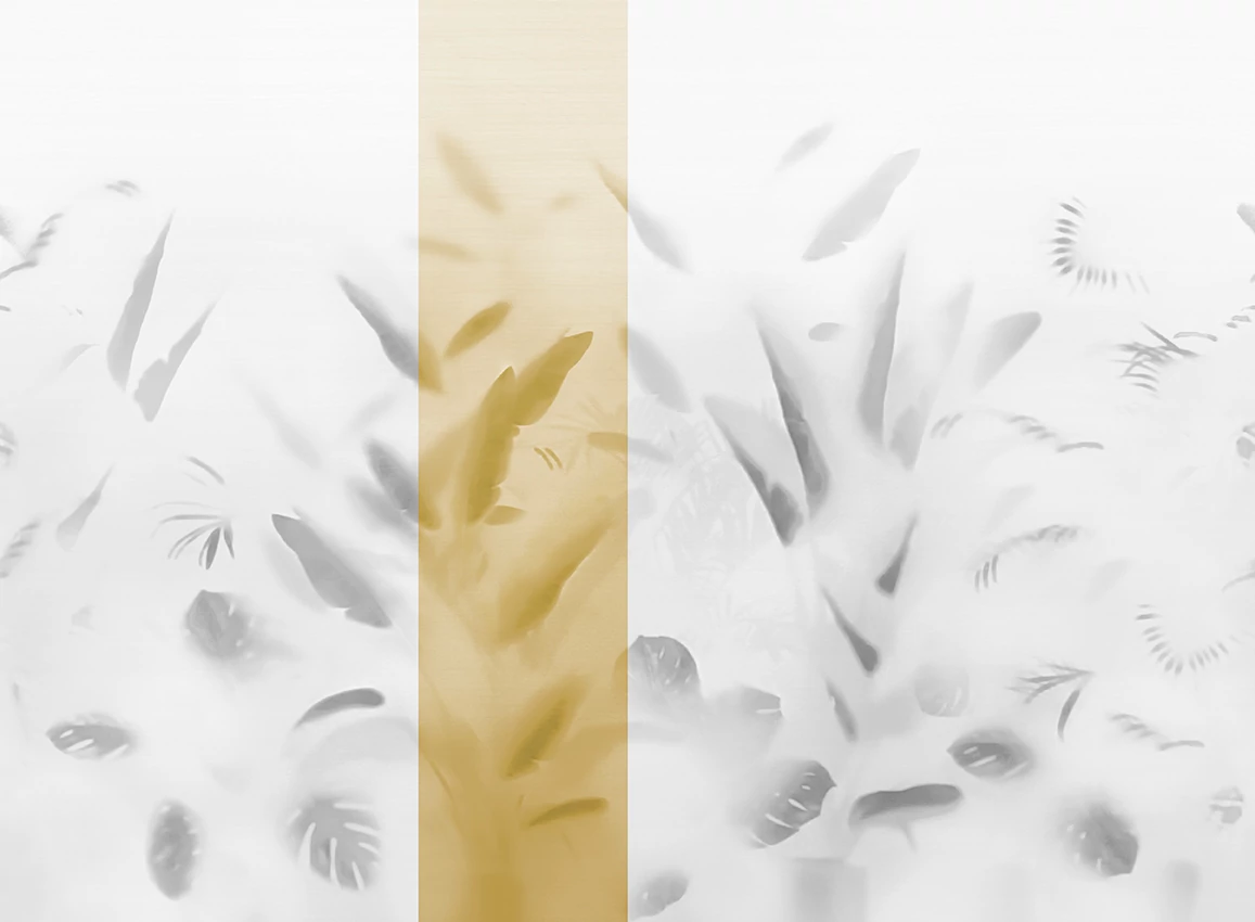 A JV 202 Murals Decor kollekció széles választékát kínálja dekoratív falfestményeknek, amelyekkel egyedi hangulatot és személyre szabott stílust varázsolhat otthonába vagy bármilyen térbe. Az új témákkal teli kínálat egy lebontási rendszert alkalmaz, amely a kollekció sarokköve, megkönnyítve a választást és az alkalmazást. Egy matt üveg, amelyen keresztül a trópusi levelek sziluettjei sejlenek fel. A Nadi bármilyen környezethez alkalmazkodik, legyen az magánlakás vagy szerződéses tér, tökéletes hátteret teremtve a berendezésnek.