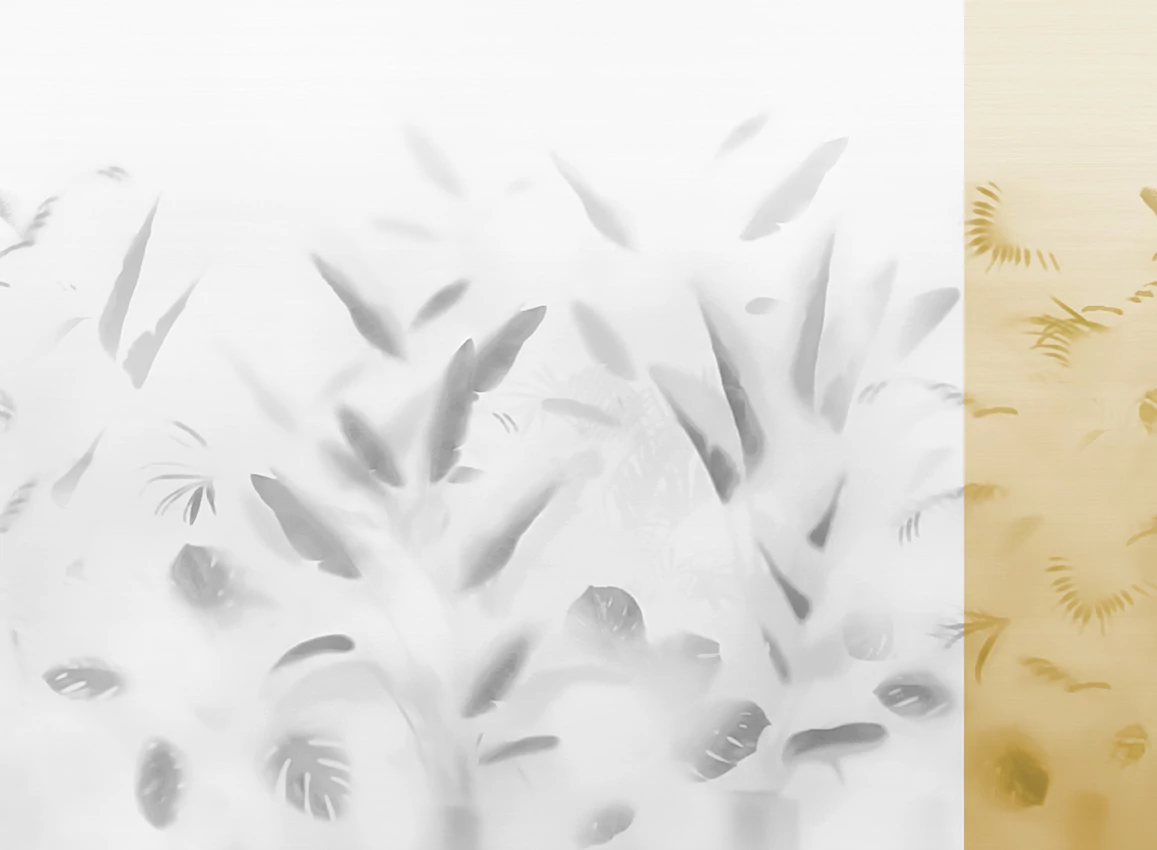 A JV 202 Murals Decor kollekció széles választékát kínálja dekoratív falfestményeknek, amelyekkel egyedi hangulatot és személyre szabott stílust varázsolhat otthonába vagy bármilyen térbe. Az új témákkal teli kínálat egy lebontási rendszert alkalmaz, amely a kollekció sarokköve, megkönnyítve a választást és az alkalmazást. Egy matt üveg, amelyen keresztül a trópusi levelek sziluettjei sejlenek fel. A Nadi bármilyen környezethez alkalmazkodik, legyen az magánlakás vagy szerződéses tér, tökéletes hátteret teremtve a berendezésnek.