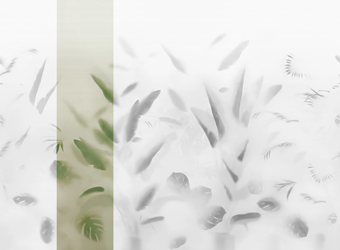A JV 202 Murals Decor kollekció széles választékát kínálja dekoratív falfestményeknek, amelyekkel egyedi hangulatot és személyre szabott stílust varázsolhat otthonába vagy bármilyen térbe. Az új témákkal teli kínálat egy lebontási rendszert alkalmaz, amely a kollekció sarokköve, megkönnyítve a választást és az alkalmazást. Egy matt üveg, amelyen keresztül a trópusi levelek sziluettjei sejlenek fel. A Nadi bármilyen környezethez alkalmazkodik, legyen az magánlakás vagy szerződéses tér, tökéletes hátteret teremtve a berendezésnek.