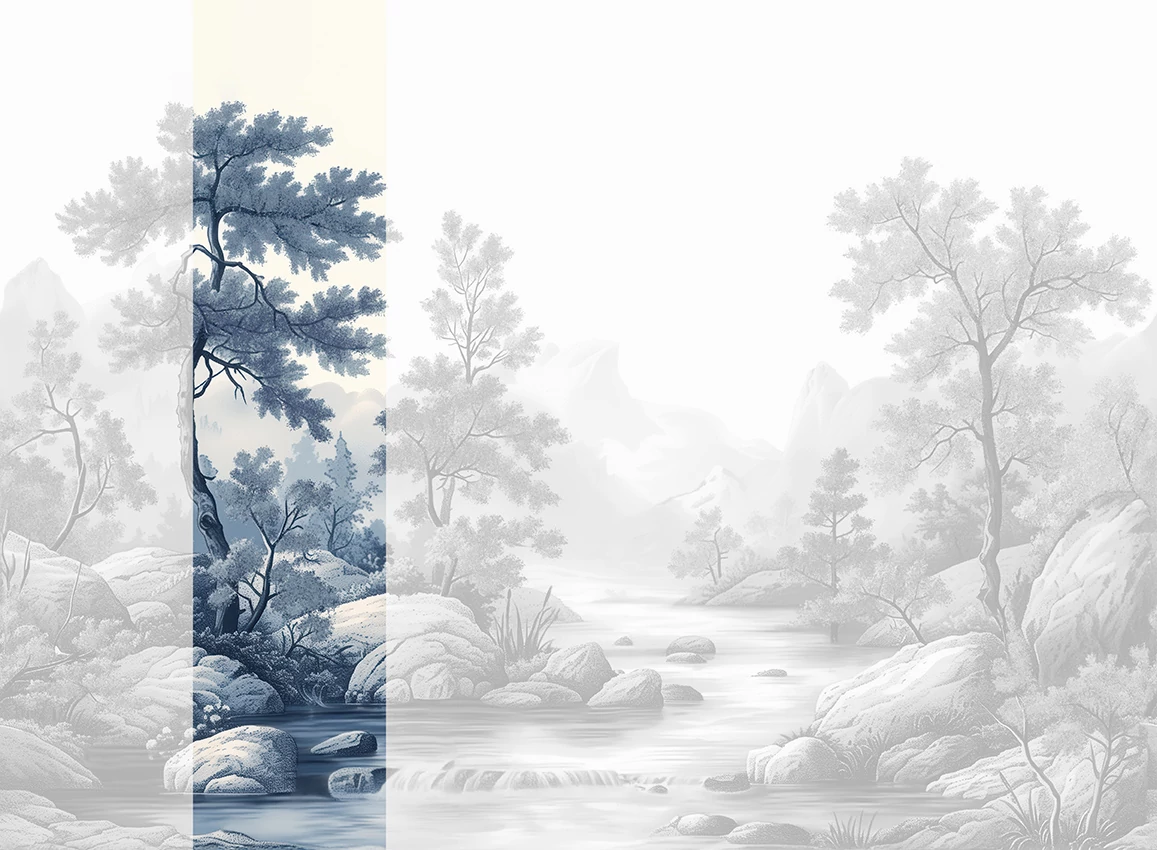 A JV 202 Murals Decor kollekció széles választékot kínál dekoratív falfestményekből, amelyekkel egyedi hangulatot és személyre szabott stílust varázsolhatunk a térbe. Egy olyan kínálat, amely tele van új motívumokkal, és egy lebontási rendszerre épül, amely a kollekció sarokköve, megkönnyítve a választást és az alkalmazást. Egy patakkal átszelt erdő, amelyet hegyek vesznek körül: egy idilli táj, amely nyugalmat és békét sugároz, ideális mind szerződéses, mind magánterületekre. Az Arcadia, a folyó víz és a távolban felbukkanó hegyek révén, mozgást és mélységet kölcsönöz a helyiségeknek.