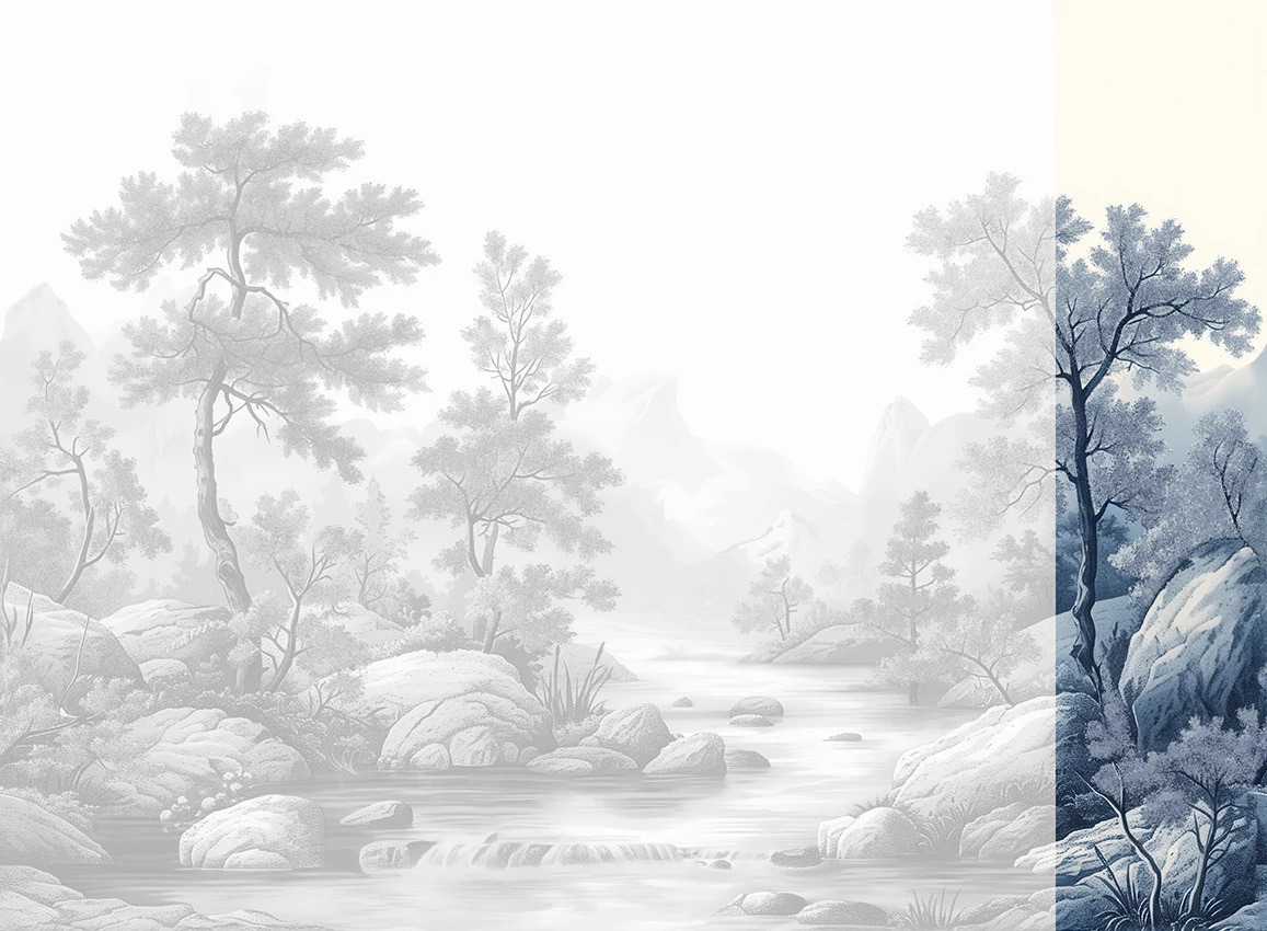 A JV 202 Murals Decor kollekció széles választékot kínál dekoratív falfestményekből, amelyekkel egyedi hangulatot és személyre szabott stílust varázsolhatunk a térbe. Egy olyan kínálat, amely tele van új motívumokkal, és egy lebontási rendszerre épül, amely a kollekció sarokköve, megkönnyítve a választást és az alkalmazást. Egy patakkal átszelt erdő, amelyet hegyek vesznek körül: egy idilli táj, amely nyugalmat és békét sugároz, ideális mind szerződéses, mind magánterületekre. Az Arcadia, a folyó víz és a távolban felbukkanó hegyek révén, mozgást és mélységet kölcsönöz a helyiségeknek.