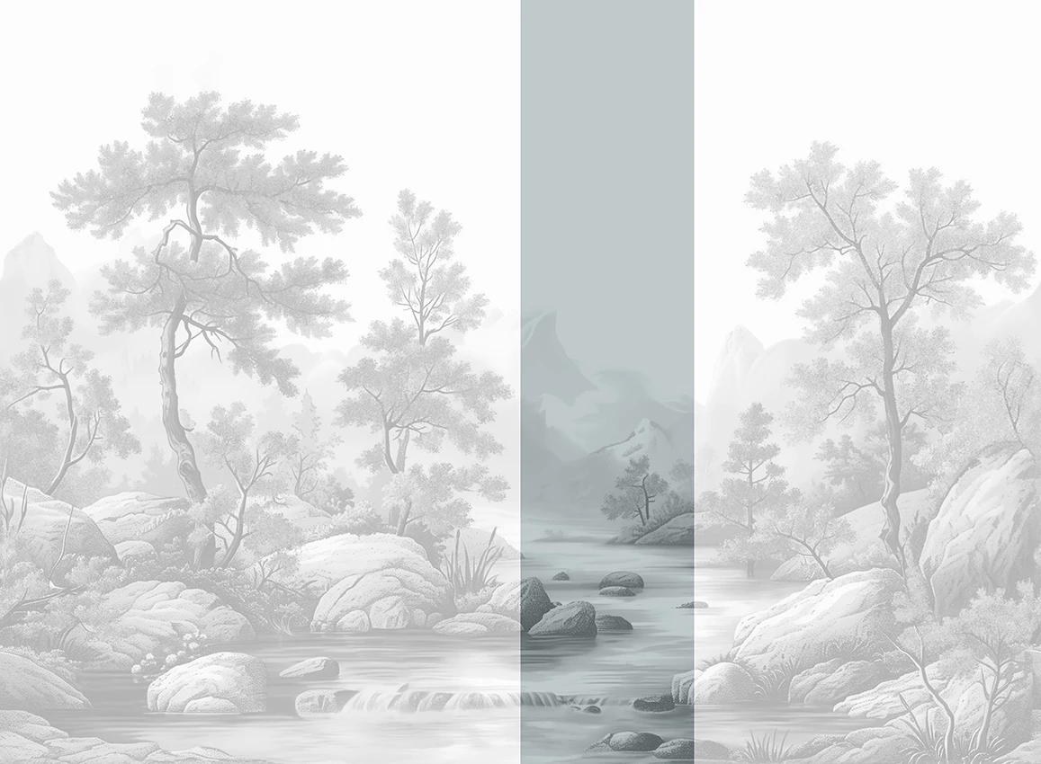 A JV 202 Murals Decor kollekció széles választékot kínál dekoratív falfestményekből, amelyekkel egyedi hangulatot és személyre szabott stílust varázsolhatunk a térbe. Egy olyan kínálat, amely tele van új motívumokkal, és egy lebontási rendszerre épül, amely a kollekció sarokköve, megkönnyítve a választást és az alkalmazást. Egy patakkal átszelt erdő, amelyet hegyek vesznek körül: egy idilli táj, amely nyugalmat és békét sugároz, ideális mind szerződéses, mind magánterületekre. Az Arcadia, a folyó víz és a távolban felbukkanó hegyek révén, mozgást és mélységet kölcsönöz a helyiségeknek.