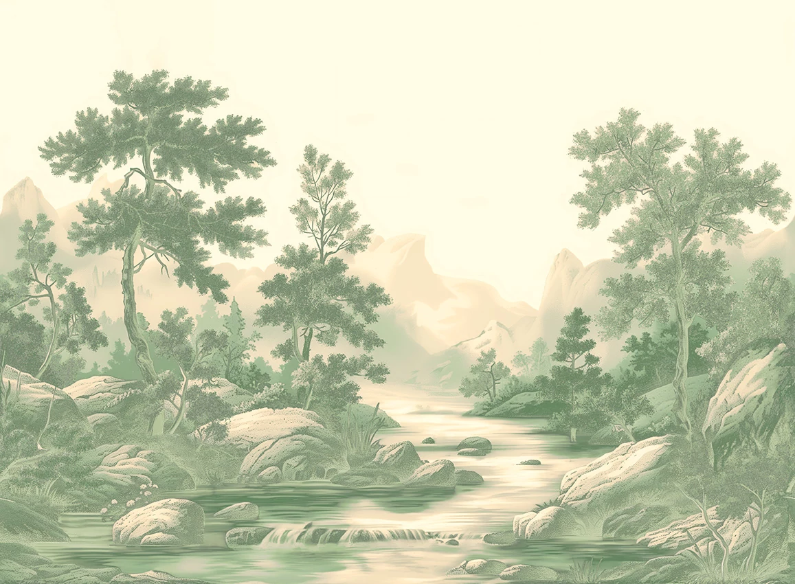 A JV 202 Murals Decor kollekció széles választékot kínál dekoratív falfestményekből, amelyekkel egyedi hangulatot és személyre szabott stílust varázsolhatunk a térbe. Egy olyan kínálat, amely tele van új motívumokkal, és egy lebontási rendszerre épül, amely a kollekció sarokköve, megkönnyítve a választást és az alkalmazást. Egy patakkal átszelt erdő, amelyet hegyek vesznek körül: egy idilli táj, amely nyugalmat és békét sugároz, ideális mind szerződéses, mind magánterületekre. Az Arcadia, a folyó víz és a távolban felbukkanó hegyek révén, mozgást és mélységet kölcsönöz a helyiségeknek.