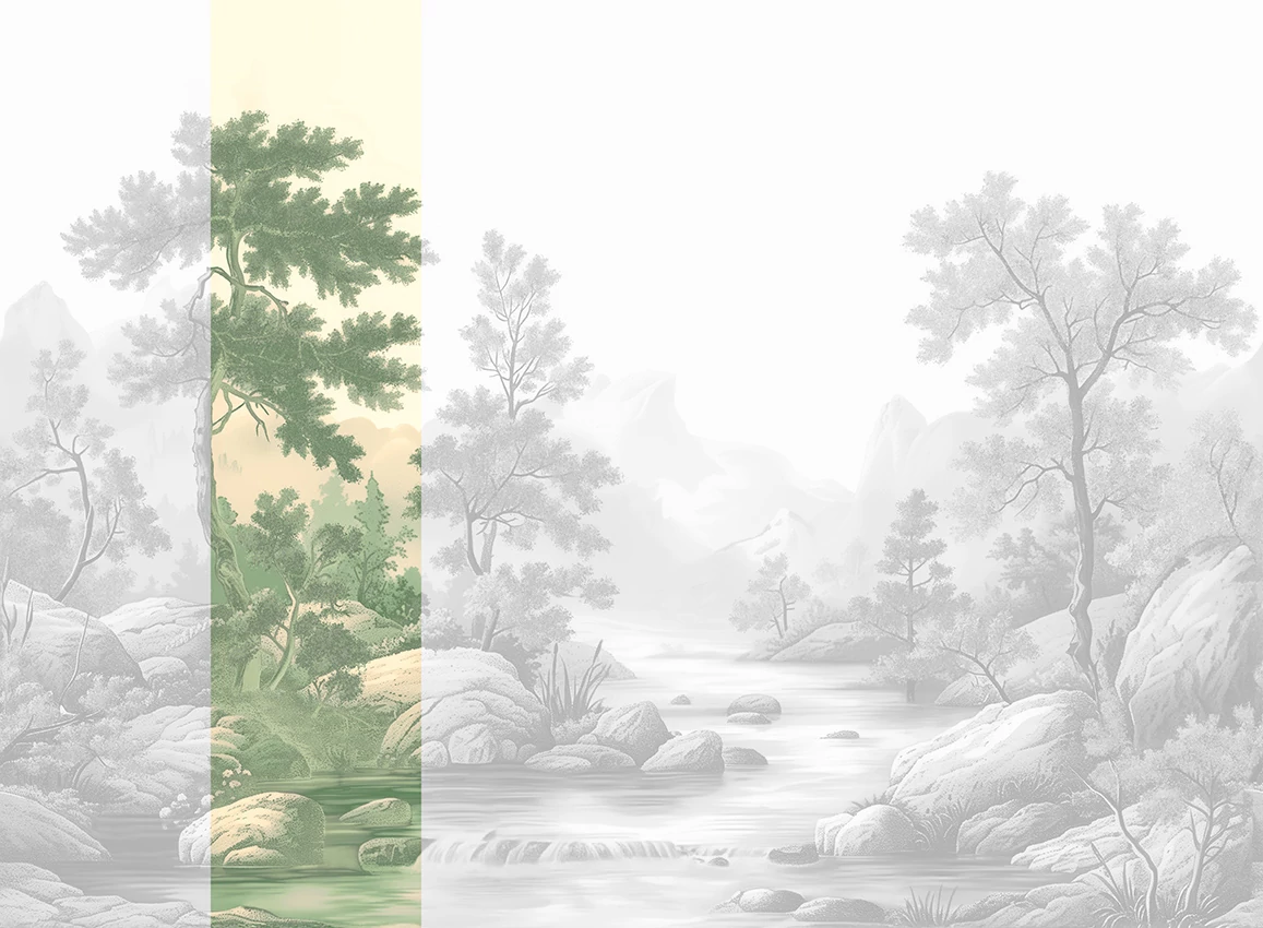A JV 202 Murals Decor kollekció széles választékot kínál dekoratív falfestményekből, amelyekkel egyedi hangulatot és személyre szabott stílust varázsolhatunk a térbe. Egy olyan kínálat, amely tele van új motívumokkal, és egy lebontási rendszerre épül, amely a kollekció sarokköve, megkönnyítve a választást és az alkalmazást. Egy patakkal átszelt erdő, amelyet hegyek vesznek körül: egy idilli táj, amely nyugalmat és békét sugároz, ideális mind szerződéses, mind magánterületekre. Az Arcadia, a folyó víz és a távolban felbukkanó hegyek révén, mozgást és mélységet kölcsönöz a helyiségeknek.