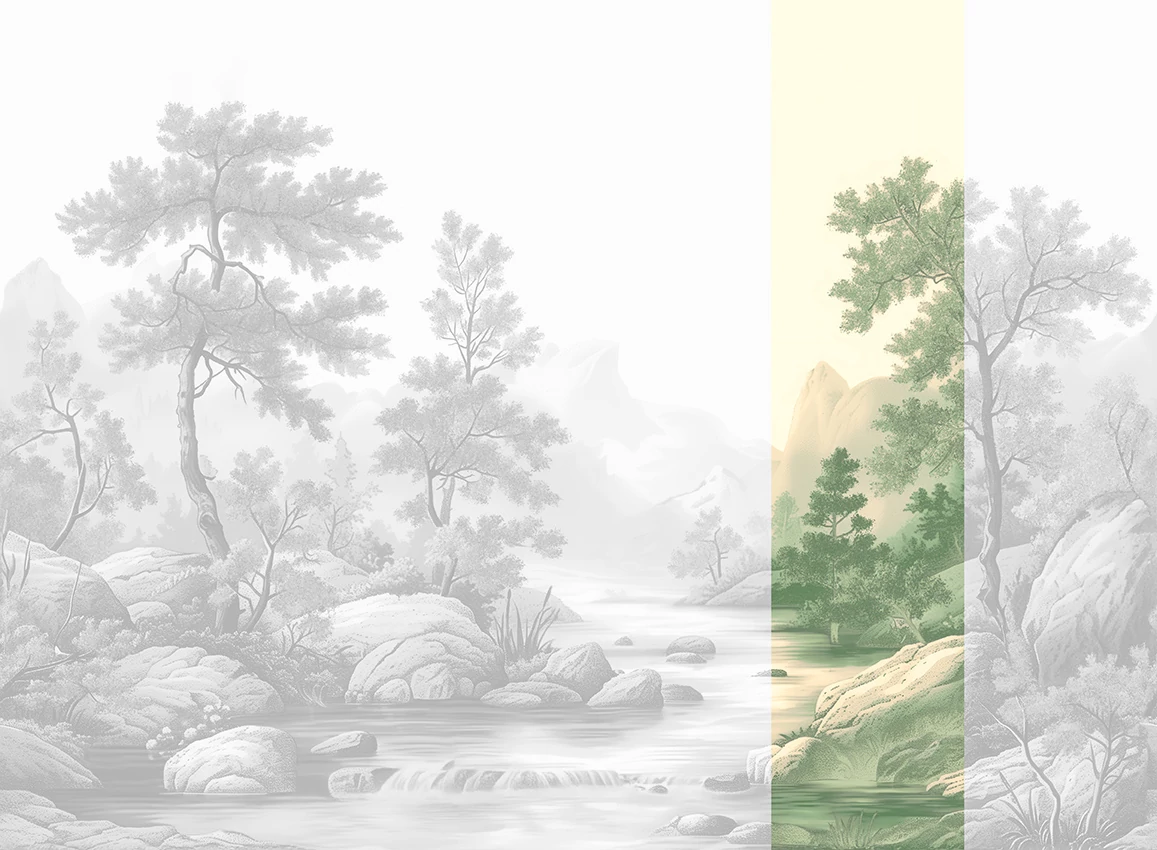 A JV 202 Murals Decor kollekció széles választékot kínál dekoratív falfestményekből, amelyekkel egyedi hangulatot és személyre szabott stílust varázsolhatunk a térbe. Egy olyan kínálat, amely tele van új motívumokkal, és egy lebontási rendszerre épül, amely a kollekció sarokköve, megkönnyítve a választást és az alkalmazást. Egy patakkal átszelt erdő, amelyet hegyek vesznek körül: egy idilli táj, amely nyugalmat és békét sugároz, ideális mind szerződéses, mind magánterületekre. Az Arcadia, a folyó víz és a távolban felbukkanó hegyek révén, mozgást és mélységet kölcsönöz a helyiségeknek.