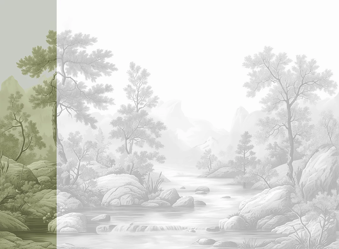 A JV 202 Murals Decor kollekció széles választékot kínál dekoratív falfestményekből, amelyekkel egyedi hangulatot és személyre szabott stílust varázsolhatunk a térbe. Egy olyan kínálat, amely tele van új motívumokkal, és egy lebontási rendszerre épül, amely a kollekció sarokköve, megkönnyítve a választást és az alkalmazást. Egy patakkal átszelt erdő, amelyet hegyek vesznek körül: egy idilli táj, amely nyugalmat és békét sugároz, ideális mind szerződéses, mind magánterületekre. Az Arcadia, a folyó víz és a távolban felbukkanó hegyek révén, mozgást és mélységet kölcsönöz a helyiségeknek.
