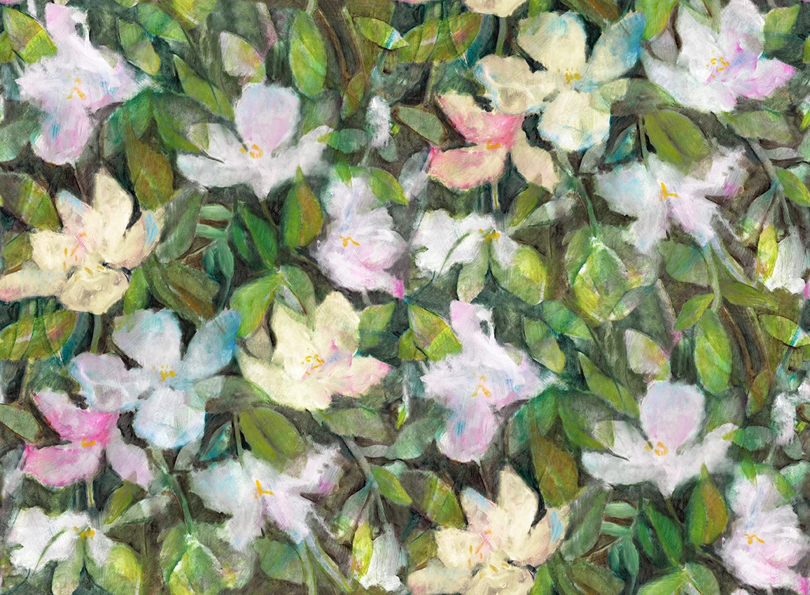 A JV 202 Murals Decor kollekció széles választékát kínálja dekoratív falfestményeknek, amelyekkel egyedi hangulatot és személyre szabott stílust varázsolhat otthonába. Az új motívumokkal teli kínálat egy lebontási rendszert alkalmaz, amely a kollekció sarokköve, megkönnyítve a választást és a felhelyezést. Egy kert sarka, ahol gyönyörű és ragyogó, lágy virágok emelkednek ki egy buja bokor levelei között. A Bronte világosságot ad a tereknek, és a dombornyomásnak köszönhetően egyedülálló vizuális és tapintási élményt teremt.