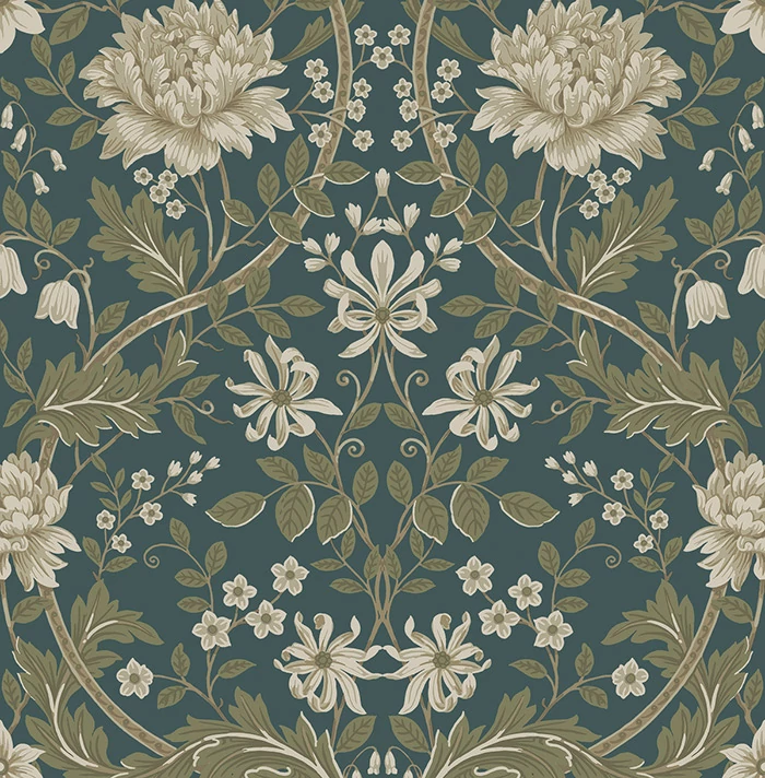 KT-Exclusive Szecessziós stílusú virágos sötétzöld vlies tapéta British Heritage Dark Green 52 cm X 10 m