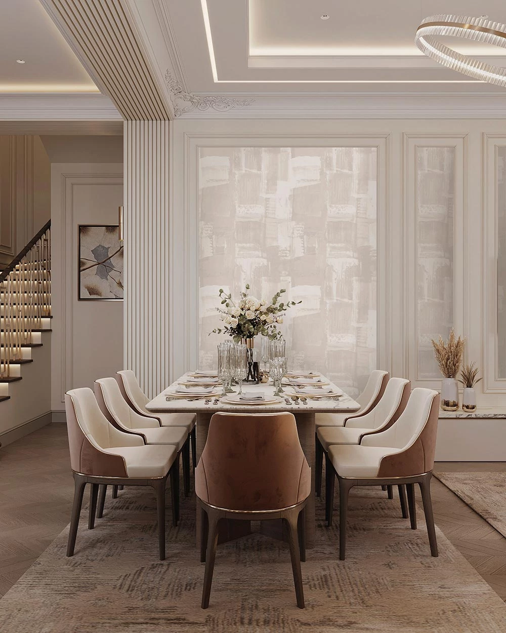 A Transcendence in Cashmere egy elegáns tapéta, amely egy lágy, taupe árnyalatú színvilággal rendelkezik, meleg és hívogató légkört teremtve. A mintázat absztrakt, festői formákat mutat be, amelyek finoman olvadnak össze, létrehozva egy folyamatos, organikus áramlást. A finom taupe árnyalatok visszafogott luxust sugároznak, mélységet és kifinomultságot adva bármely helyiségnek. A természetes anyagok időtlen szépsége ihlette ezt a színváltozatot, amely békés, elegáns hátteret kínál, és számos belső stílushoz illik. Vásárlás előtt javasoljuk egy minta megrendelését.