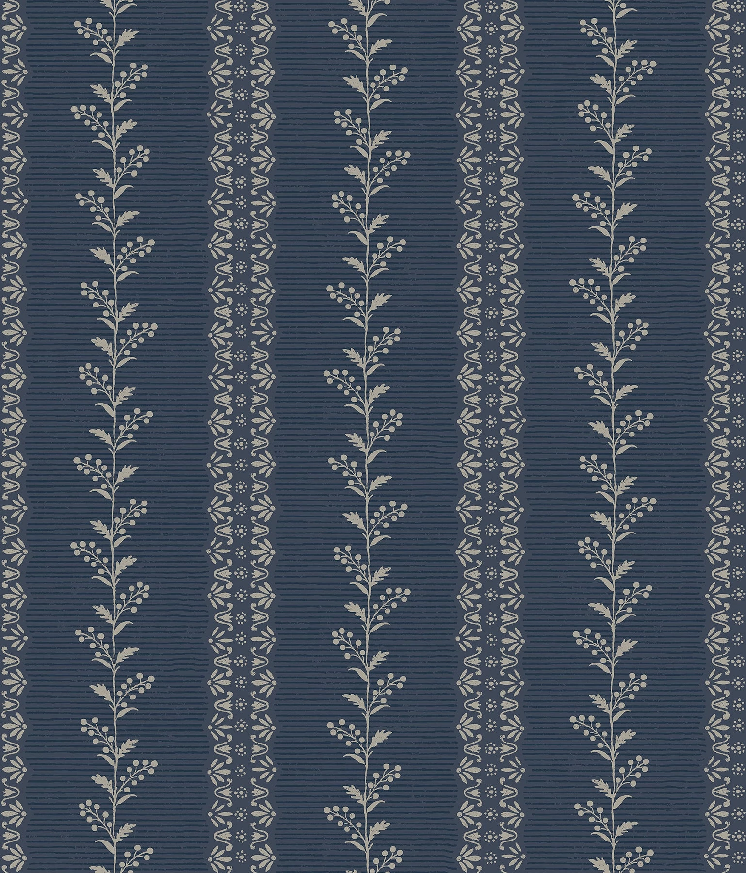 Egy kifinomult csíkos minta, amely a természetre utal. Széles oszlopokban finoman vonalazott részletek futnak, melyeket bogyókkal teli kúszónövények és virágminták egészítenek ki, hullámos szünetet teremtve.