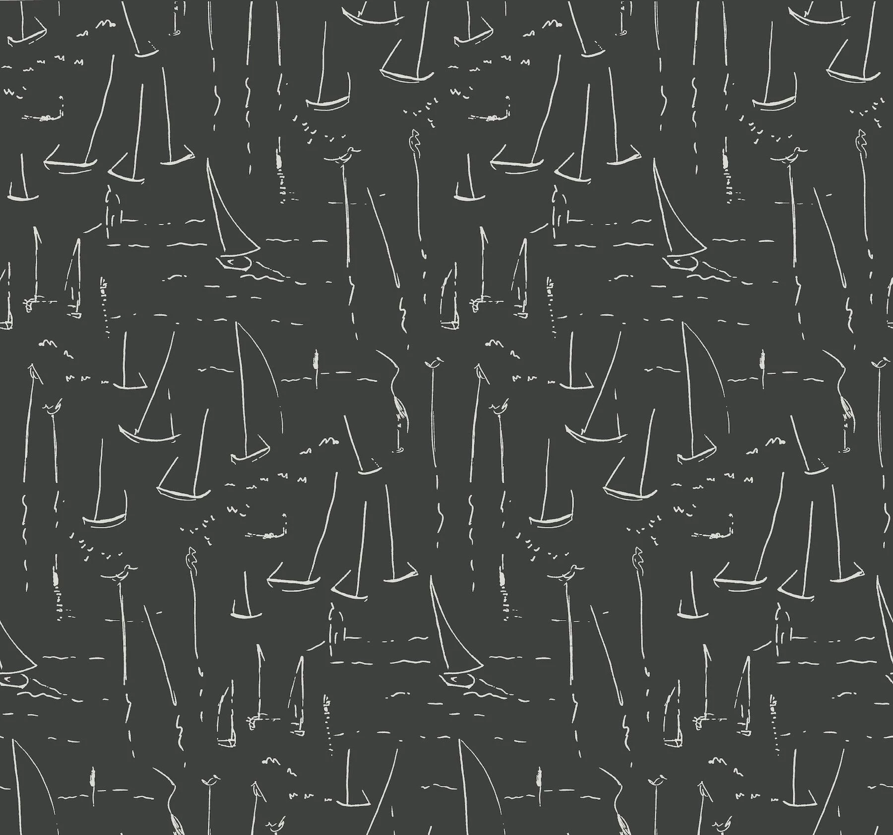 York Vitorlásokat ábrázoló modern fekete-fehér vlies tapéta Vermillion Coast Carbon Black 68,58 cm X 8,22 m